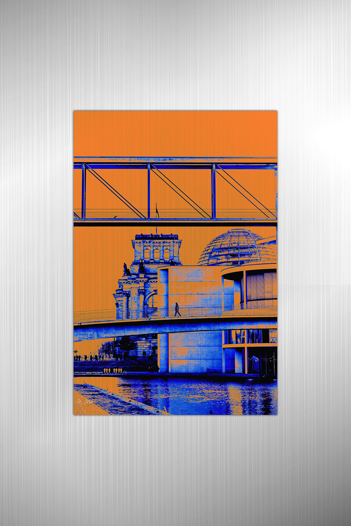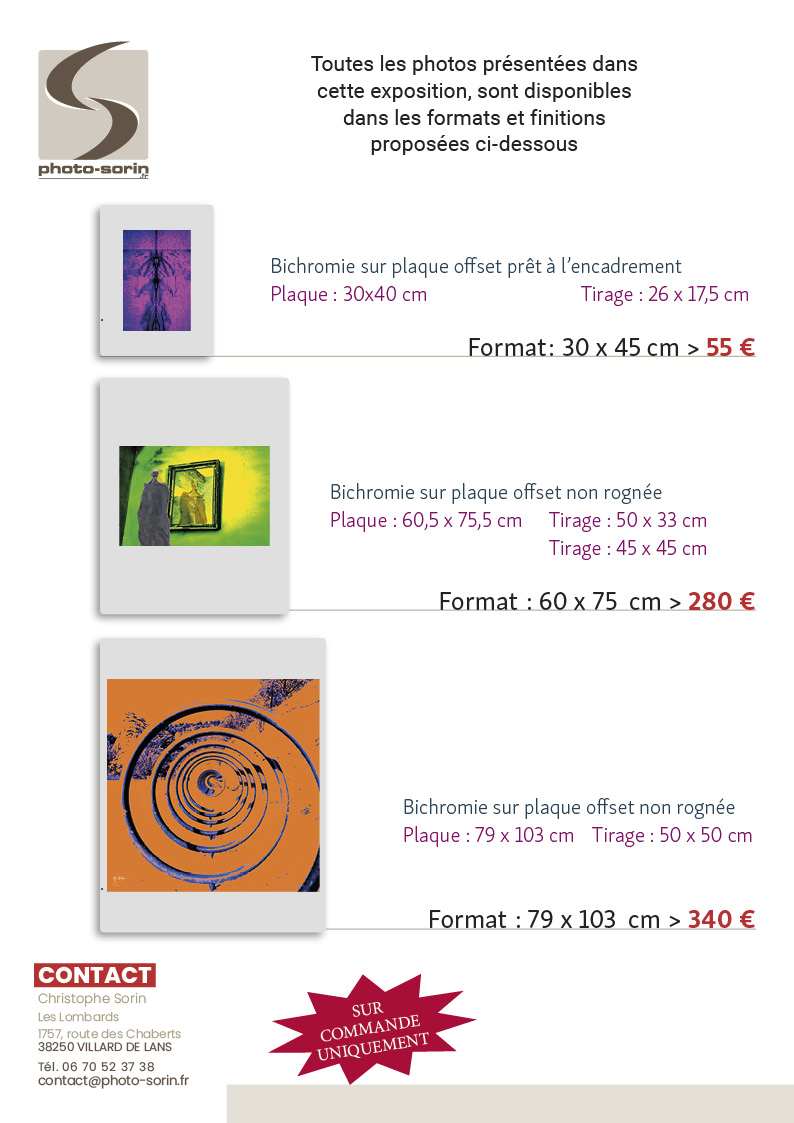 Mon amour des métiers de l’imprimerie et de la photographie m’a amené à imaginer et réaliser des tableaux photographiques et œuvres bichromatisées qui sont sublimées par le miroitement des plaques offset.